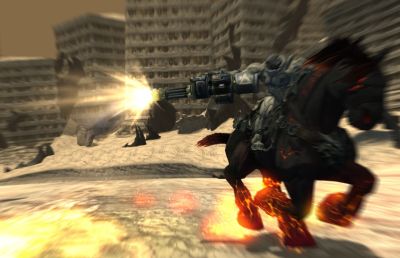Si tratta di Guerra, il titanico protagonista di Darksiders, un gioco che verrà presentato su Playstation 3 e Xbox 360 a partire dal prossimo 8 gennaio, per la felicità di chi voleva trovare una valida alternativa a quel grande personaggio che prende appunto il nome di Dante e si diverte a distruggere nemici con le sue fide armi da fuoco e con le armi da taglio effettuando coreografici attacchi che riducono ogni avversario in poltiglia.