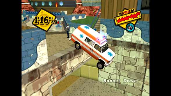 Il gioco dovrebbe essere strutturato più che come un GTA, come il caro vecchio Crazy Taxi che tanto ha spopolato nelle sale giochi e nelle sue versioni per console. Come il gioco del tassista pazzo anche Emergency Mayhem è dotato di una grafica molto colorata e vivace e pare si possano utilizzare diversi mezzi di trasporto.