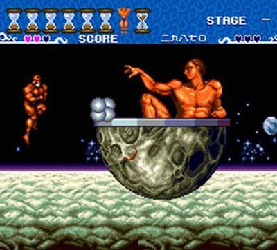 Bisogna dire che il gioco non è totalmente inedito visto che si tratta di una conversione piuttosto fedele di un vecchio titolo uscito agli inizi degli anni ’90 su PC, ma la caratteristica principale rimasta immutata da questa trasposizione, è il leit motif che vuole disseminati in tutto il gioco uomini muscolosi mezzi nudi! Infatti al posto della classica astronave, guideremo una sorta di appassionato di bodybuilding volante.