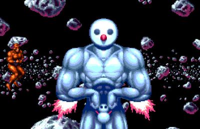 I nemici appariranno invece come comuni mezzi spaziali da abbattere, ma una volta distrutti riveleranno come piloti altrettanti culturisti, esattamente come il protagonista. I boss saranno totalmente a tema presentando enormi pupazzoni di neve muscolosissimi, oppure degli energumeni mezzi nudi che lanciano laser alzando le gambe. Anche il punteggio verrà scandito da un omino muscoloso che si fletterà, insomma un gioco per appassionati del genere.