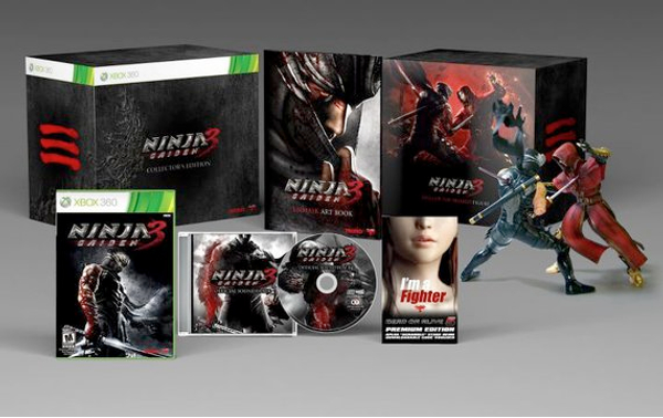 Oltre al gioco completo (e ci mancherebbe) la collector’s di Ninja Gaiden 3 include un artbook a colori, la colonna sonora completa su CD, un codice per scaricare la demo di Dead Or Alive 5 ed una statuetta che raffigura Ryu durante uno scontro cruento.
