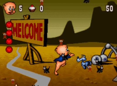 Il maialino in questione è stato protagonista di Porky Pig’s Haunted Holiday, un classico platform game giunto in versione Super Nintendo durante l’era delle console a 16 bit in cui dovevamo impersonare il simpatico personaggio attraverso varie location nate dai suoi incubi, come una foresta, la città fantasma, una miniera abbandonata e così via. La grafica fumettosa e il gameplay dinamico e colorato resero questo platform godibile e divertente.
