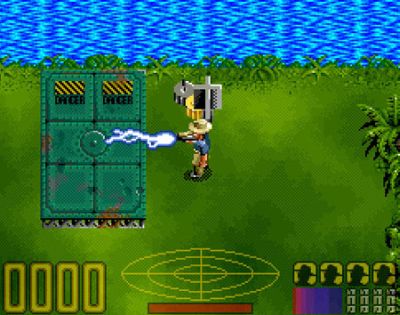 La versione per Super Nintendo risultava nettamente differente. La visuale non era laterale bensì dall’alto e l’unico personaggio selezionabile era Alan Grant, con il compito di soddisfare alcune missioni pur di poter scappare dal pericoloso parco con feroci dinosauri in libertà. Alcune sequenze del gioco utilizzavano una visuale in prima persona trasformando Jurassic Park da avventura a sparatutto in stile Doom, una trovata azzeccata per rendere il gioco ancora più avvincente.