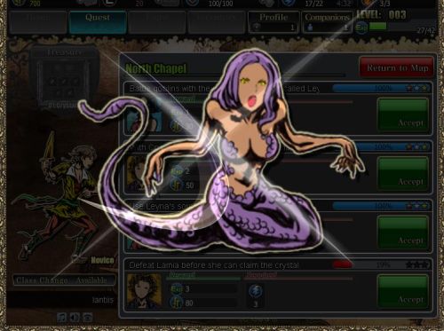 Si tratta di Knights of the Crystals, un titolo che ci metterà alla prova con una serie di missioni degne di un gioco di ruolo vero e proprio ma chiaramente senza tutta la struttura tipica di un prodotto appartenente a questa famiglia che soltanto su console può esistere nella forma classica. Semplici menu che ci chiederanno se accettare o menu una missione e se accedere o meno ad una battaglia saranno le nostre uniche interazioni.