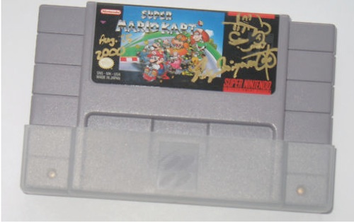 Dopo il Nintendo DS Racing Team e Metal Gear Solid 2 autografato da Hideo Kojima, oggi è il turno di una cartuccia di Super Mario Kart per Super Nintendo firmata dal leggendario Shigeru Miyamoto, il papà dell’idraulico italiano.