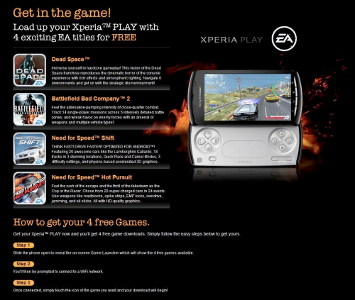 Interessante questa nuova promozione di Electronic Arts dedicata a tutti i possessori del Sony Ericsson Xperia PLAY. I possessori di questo smartphone possono scaricare gratuitamente, fino al 15 gennaio, quattro titoli targati EA Mobile.